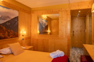 Le nostre camere Standard, confortevoli e arredate in tipico stile montano, offrono tutto ciò che serve per un soggiorno pratico e piacevole. Ideali per una vacanza dedicata allo sci, con una finestra che si affaccia sulle montagne per un tocco di magia.