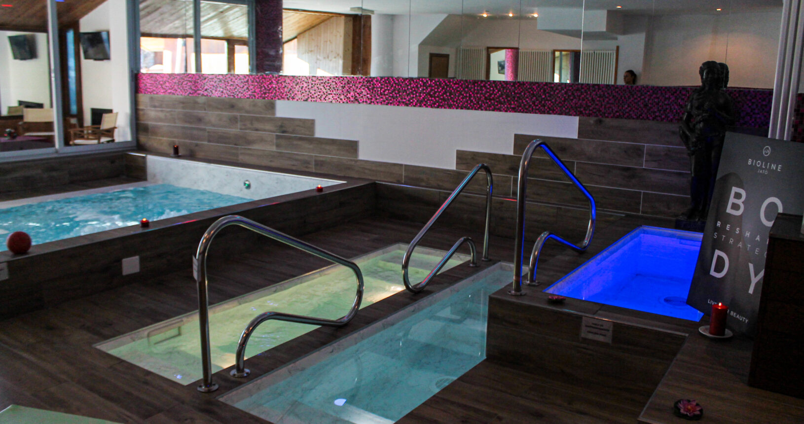 Il Percorso Benessere Spa propone due saune tradizionali (bio-sauna e sauna finlandese), bagno di vapore con aromaterapia, doccia emozionale tra luci e profumi, percorso kneipp caldo-freddo tonificante, vasca idromassaggio con sedute e lettini relax, e infine una buona tisana per purificare il corpo e la mente.